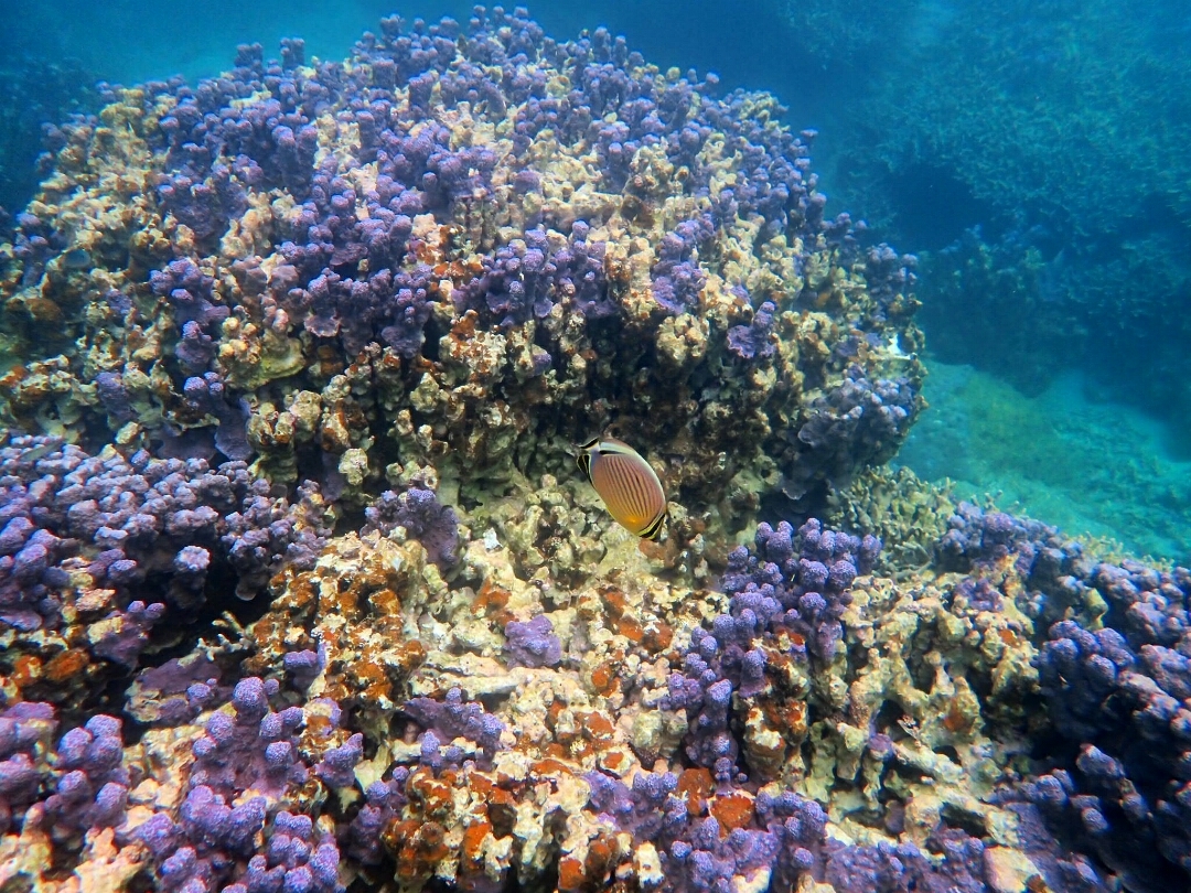 サンゴも本当にさまざまで、形も先端がとがった細長い形のものとか、丸い粒状が連なった形のものとか、しいたけの傘みたいにパッと開いたものとか、テーブルみたいなものとかいろいろあって、サンゴの色も青、紫、赤、本当に美しかったです」