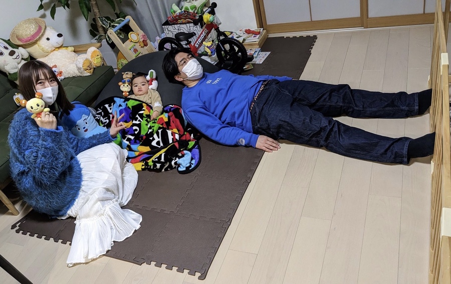 玄関を進み、リビングへと移動すると娘さんはぐっすり夢の中。